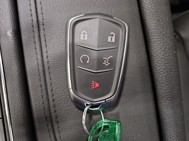 - Opens or closes when the system senses the key fob and the driver extends their foot under the left-hand side of the rear bumper over an image of the Cadillac Crest projected under the vehicle