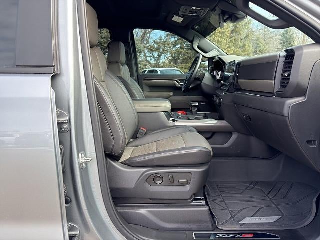 This powerful 2023 Chevrolet Silverado 1500 ZR2 is the ultimate factory off road machine, combining high speed desert capability with refined daily luxury. With 49,603 miles, this truck has been thoroughly vetted and is ready for its next adventure. Powering this beast is a standard 6.2L V8 engine that pumps out a massive 420 horsepower and 460 lb ft of torque, mated to a responsive 10 speed automatic transmission. The ZR2 trim is specifically engineered for the rough stuff, featuring Multimatic DSSV spool valve dampers, front and rear e-locking differentials, and a unique high clearance front bumper that provides an impressive 31.8 degree approach angle.The exterior commands attention with its bold blacked out grille, "flow tie" emblem for increased airflow, and aggressive 33 inch Goodyear Wrangler Territory MT tires. Functional details like the hidden dual exhaust and steel skid plates ensure that the truck is as protected as it is capable. Despite its rugged exterior, the interior is a high tech sanctuary. The cabin features a massive 13.4 inch diagonal infotainment touchscreen with Google built in, alongside a 12.3 inch digital driver information center. Premium touches include heated and ventilated leather front seats with unique ZR2 stitching, a heated steering wheel, and a Bose premium sound system that delivers crystal clear audio.Safety and trailering are effortless thanks to the Chevy Safety Assist suite, which includes automatic emergency braking, lane keep assist, and forward collision alert. The 147 inch wheelbase and crew cab configuration offer cavernous interior room for five adults, while the short bed remains highly functional with the available Multi Flex Tailgate. Whether you are crawling over rocks or cruising the highway, the 2023 Silverado ZR2 provides a level of versatility and performance that few other pickups can match.